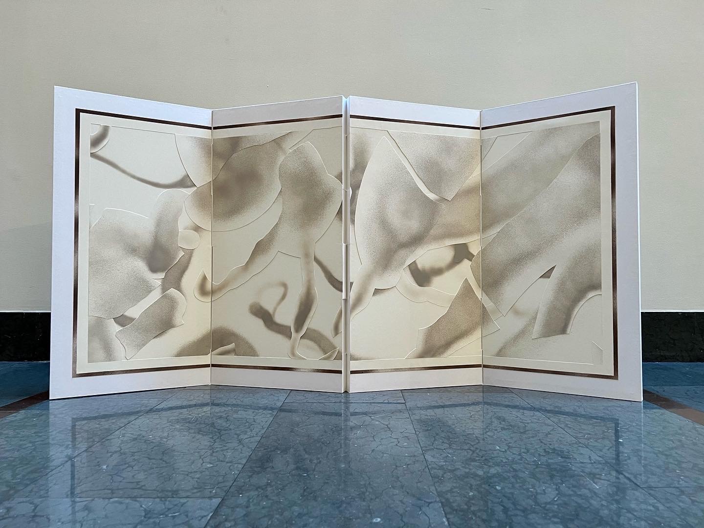 Unfolding Image (group show), Swedish embassy in Tokyo, Collage mounted on a Japanese traditional foldingscreen, 2022.
