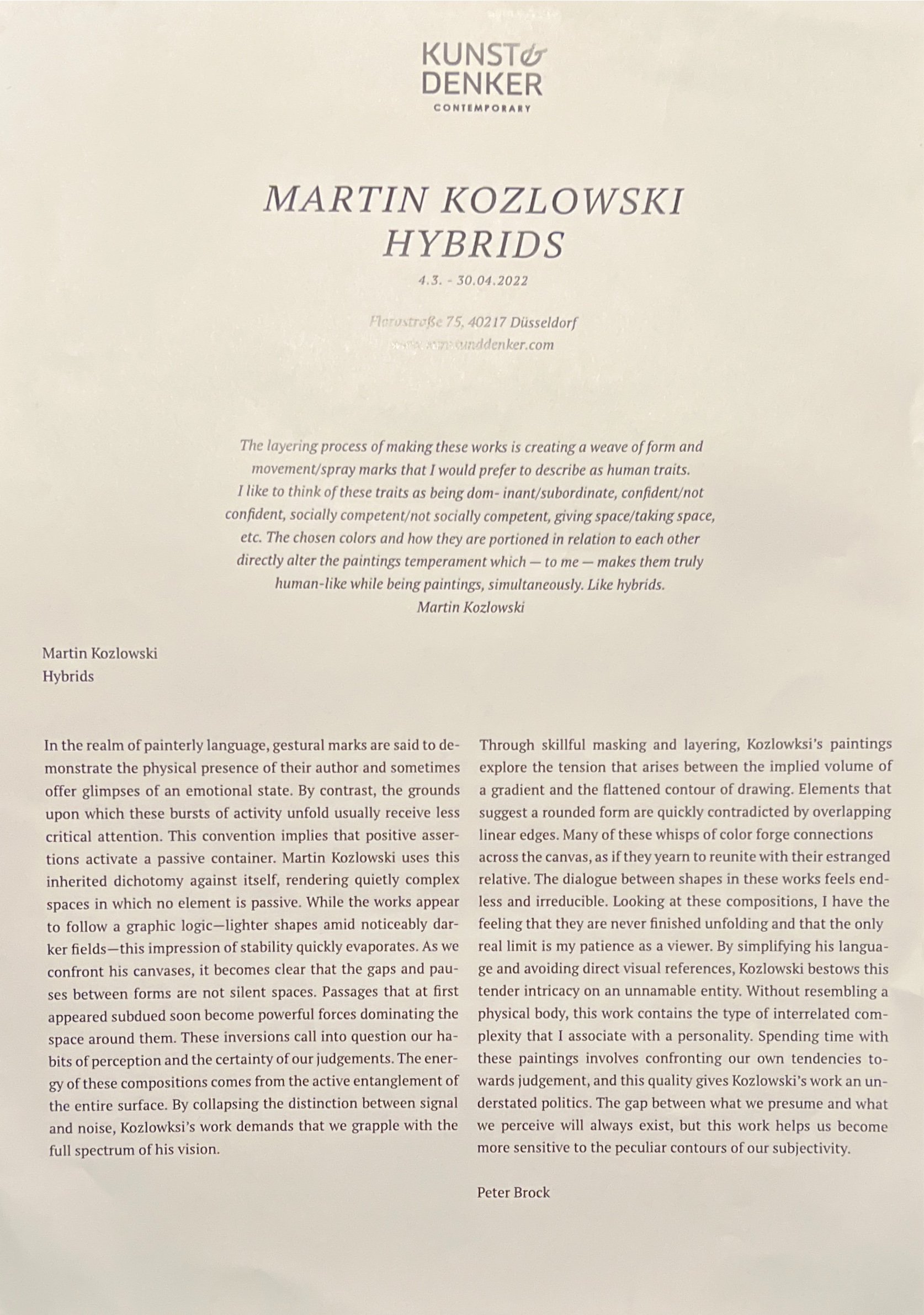 Hybrids (solo show), Kunst & Denker Contemporary, Dusseldorf, DE, 2022.